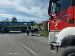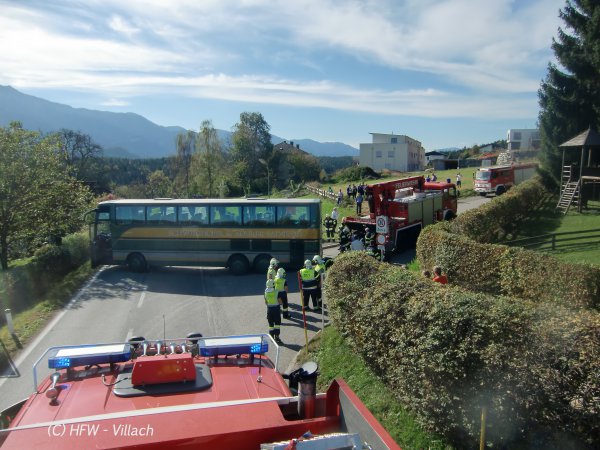 Kurz vor 13 Uhr 30 wurde der Technische Einsatzzug der Hauptfeuerwache Villach gemeinsam mit der Freiwilligen Feuerwehr Drobollach zu einer Bergung eines Reisebus alarmiert.