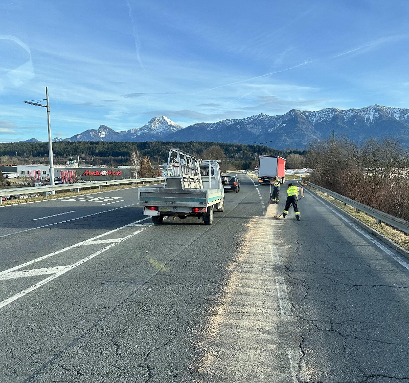 Am 21. Februar meldete gegen 15 Uhr 30 ein Notrufteilnehmer der Feuerwehrleitstelle Villach eine Dieselspur im Bereich der B86 Villacher Straße. Wie lange diese sein solle, konnte nicht gesagt werden.