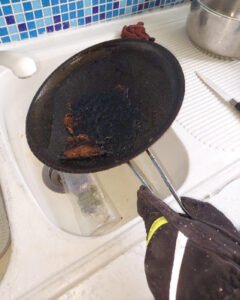 Durch die Feuerwehr wurde die Pfanne mit den verkohlten Speiseresten von der Herdplatte entfernt sowie die Räume mittels Hochleistungslüfter rauchfrei gemacht.