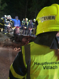 Kurz nach 20:00 Uhr meldete die Rettungsleitstelle Kärnten an die Feuerwehrleitstelle Villach einen schweren Verkehrsunfall mit Fahrzeugüberschlag mitsamt Pferdeanhänger auf der neuen Zubringerstraße zur Firma Infineon im Stadtteil Perau.