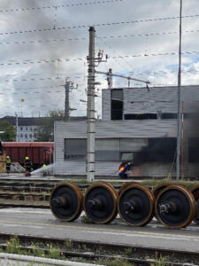 Gegen 09:30 meldete ein Notrufteilnehmer der Feuerwehrleitstelle Villach das es in einer ÖBB Betriebsanlage im Villacher Stadtteil Völkendorf zu einem Brand einer Acetylengasflasche gekommen sei.