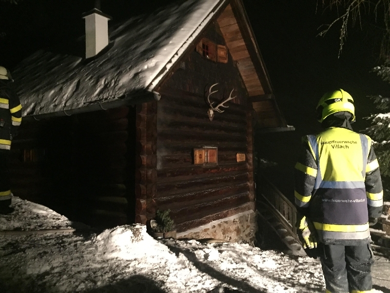 Gegen 22:00 Uhr wurde die Feuerwehr von einem Hüttenbesitzer über einen vermutlichen Brand in seinem Holzblockhaus auf der Unterwollaniger Alm im Villacher Stadtteil Wollanig verständigt.