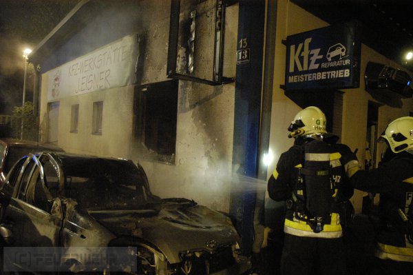 Zu einem gefährlichen Brand in einem Büro einer KFZ Werkstätte der auch mehrere abgestellte Fahrzeuge beschädigte - rückten drei Villacher Feuerwehren aus.