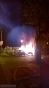 Als wir am Einsatzort eintrafen schlugen uns bereits Flammen aus einem Bürofenster entgegen, mehrere vor dem Fenster abgestellte Fahrzeuge brannten bereits.