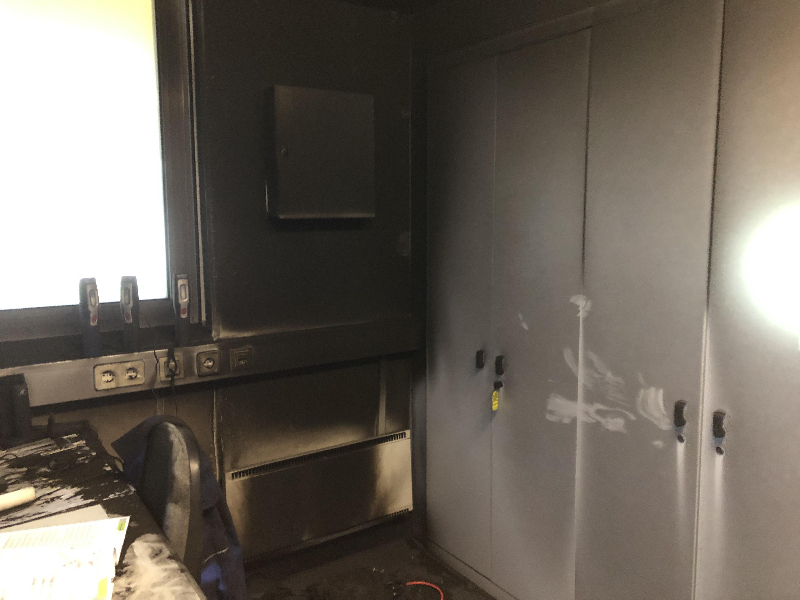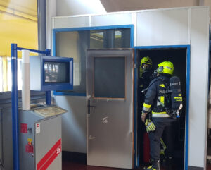 Da die Türe zum eigentlichen Werkstättenbereich geschlossen war, erstickten die Flammen aufgrund der fehlenden Sauerstoffzufuhr. Ein Atemschutztrupp begab sich in den stark verrauchten Raum und entfernte das zur Gänze verschmorte Ladegerät. Mittels Wärmebildkamera wurde der Raum kontrolliert und die giftigen Rauchgase ins Freie geblasen. Der betroffene Bereich wurde durch die Ruß- und Rauchgasniederschläge stark in Mittleidenschaft gezogen. Die verschmorte Batterie kam zur Abkühlung vorsorglich in ein Wasserbad.