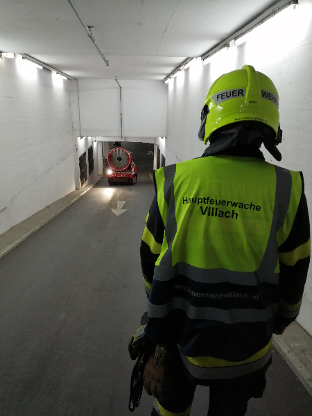 Fast zeitgleich meldete eine Anruferin über Notruf 122 eine starke Rauchentwicklung in der Tiefgarage des EKZ Interspar in der Ringmauergasse. Sofort wurde Alarmstufe 2 für die Hauptfeuerwache Villach und die FF Vassach ausgelöst.