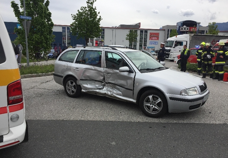 Als bereits ein Tanklöschfahrzeug der Hauptfeuerwache bei einem Brandmeldealarm in der Villacher Innenstadt im Einsatz stand, wurden wir gegen 11:30 Uhr, gemeinsam mit der Freiwilligen Feuerwehr Judendorf, zu einem Verkehrsunfall mit vermutlich eingeklemmten Personen auf die Kärntner Straße, Höhe des Einkaufszentrums, alarmiert. Aus noch unbekannter Ursache stießen dort im Kreuzungsbereich 2 Pkws zusammen.Beim Eintreffen der ersten Einsatzkräfte konnte festgestellt werden, dass glücklicherweise keine Personen mehr im Fahrzeug eingeklemmt waren.Eine Mutter und ihr Kleinkind wurden, durch den heftigen Aufprall auf die rechten Fahrzeugseite, unbestimmten Grades verletzt. Sie wurden vom Notarztteam des Roten Kreuzes erstversorgt und ins LKH Villach verbracht.Nach Aufnahme des Unfalles durch die Polizei wurden die beiden Fahrzeuge aus dem Kreuzungsbereich durch die Feuerwehr entfernt und die Unfallstelle gesäubert. Die Fahrzeuge wurden von einem privaten Abschleppunternehmen abtransportiert.