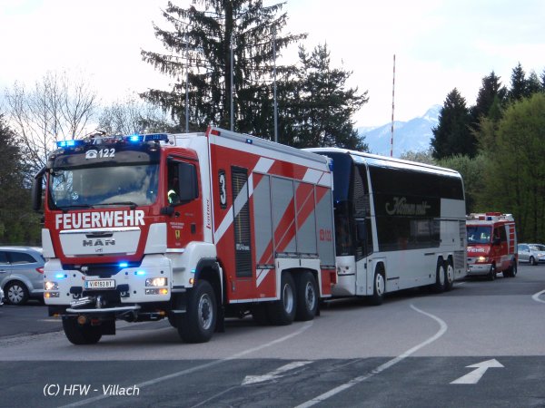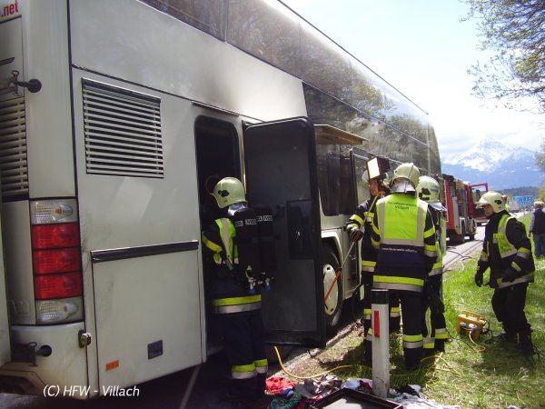 Kurz nach 12 Uhr meldeten mehrere Autofahrer via Notruf 122 einen rauchenden Autobus auf der Tauernautobahn A10, 300m nach der Unterflurtrasse St. Andrä. Zeitgleich wurde diese Meldung von der Autobahnpolizei an die BAWZ Villach weitergeleitet. Sofort wurde Alarmstufe 2 für die Hauptfeuerwache Villach und die FF Vassach ausgelöst.