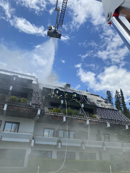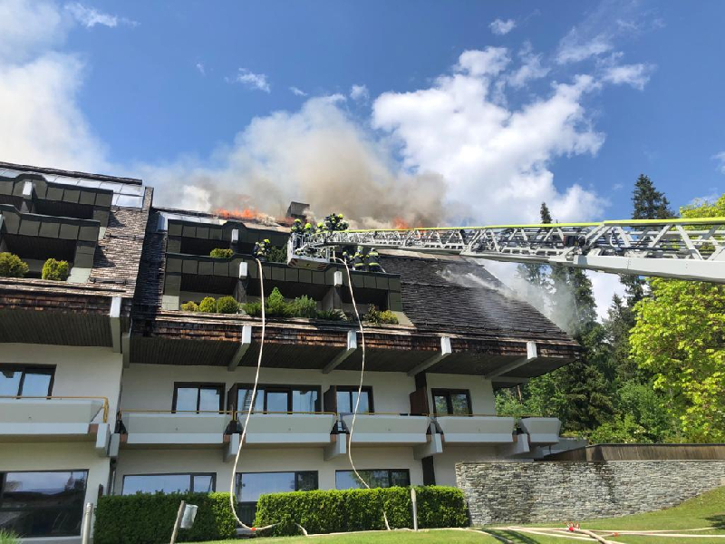 Zwischenzeitlich wurde durch den Leitstellenverbund Kärnten das Alarmstichwort auf „B6 Brand Hotel“ erhöht. Nach und nach wurden weitere Atemschutzträger aus Villach Land und Stadt zur Einsatzstelle beordert und schließlich im Innenangriff eingesetzt. Mühsam musste mit Rettungskettensägen in Handarbeit Zwischendecken aufgeschnitten werden, um an die Glutnester zu gelangen.