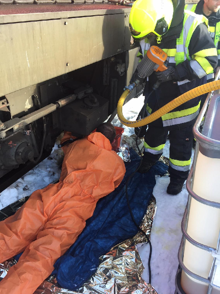 Nach setzten dieser Tätigkeiten wurde in weiterer Folge der restliche Diesel mittels einer sogenannten Fasspumpe durch die Feuerwehr in einen Auffangbehälter umgepumpt. Der bereits minimal ausgetreten Treibstoff wurde mittels flüssigen Bindemittel neutralisiert.