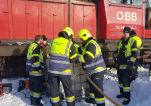 Bei Eintreffen der ersten Kräfte der Hauptfeuerwache wurde festgestellt das eine Diesellok auf einem Nebengleis zum Stehen gekommen war und der Lokführer bereits die Einsatzkräfte erwartete.