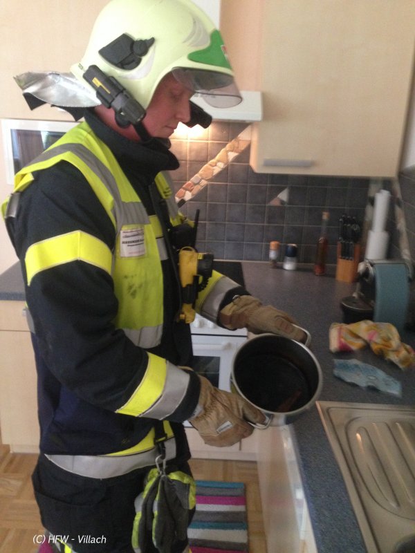 Über ein gekipptes Fenster stiegen Feuerwehrmänner in die Wohnung ein und entfernten den Topf mit der bereits verbrühten Rindsuppe vom Herd.