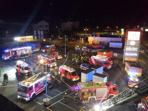 Angemerkt wird, dass die Mitarbeiter des Betriebes vorbildlich gehandelt haben und gemäß der Brandschutzordnung unverzüglich nach der Alarmierung einen Räumungsalarm und mit den vorhanden Feuerlöschern Brandbekämpfungsmaßnahmen eingeleitet haben- so konnte der Brand zuerst auf die Ausbruchstelle begrenzt werden. All diese Maßnahmen haben dazu beigetragen, dass der Geschäftsbetrieb ohne Einschränkungen weiter gewährleistet ist.