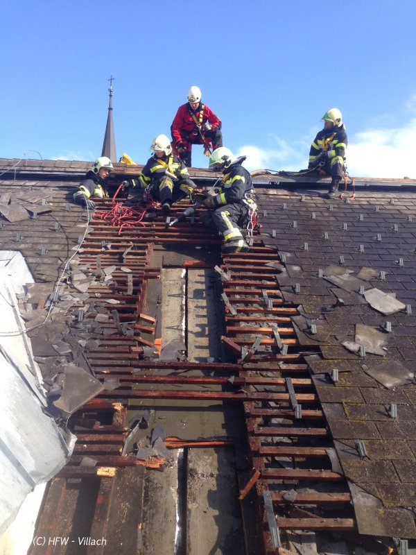 In mühevoller Arbeit wurde der Dachbereich mittels Motorkettensägen geöffnet um an die Glutnester zu kommen. Mit so genannten "Fog Nails“,das sind spezielle Löschnägel, wurden Löschwasser in die Fuge eingebracht.