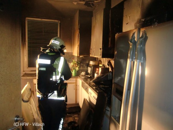In einem Mehrparteienhaus war im Ersten Stock im Bereich der Küche ein Brand ausgebrochen.