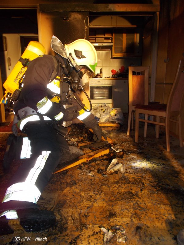 Kurz vor 01.00 Uhr brach in einer Erdgeschosswohnung eines mehrstöckigen Wohnhauses im Villacher Stadtteil Neulandskron aus noch nicht restlos geklärter Ursache ein Feuer aus. Mehrere Mieter hörten das Alarmsignal der Heimrauchmelder und verständigten die Feuerwehr.