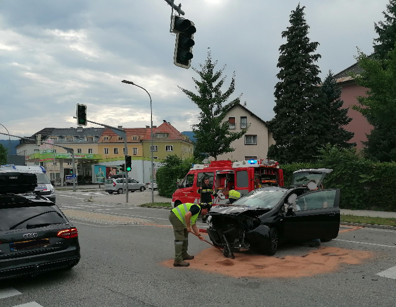 Zusätzlich wurde unsere Bereitschaft gegen 17:00 Uhr zu Aufräumarbeiten und Ölbinde Maßnahmen nach einem schweren Verkehrsunfall in die Villacher Ossiacherzeile alarmiert. Dort waren zwei PKW aus noch unbekannter Ursache miteinander fast frontal kollidiert. Dabei wurden zwei Insassen teils schwer Verletzt und vom Rettungsdienst versorgt und ins LKH Villach eingeliefert. Unsere Kräfte wurden von den Feuerwehren St. Magdalen und Perau welche zufällig zum Unfallort hinzugekommen waren bei den Maßnahmen unterstützt.