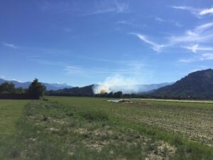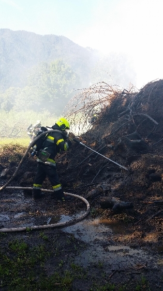 Vor Ort brannte ein großer Haufen mit Baum- und Grünschnitt. Der Rauch und die Flammen waren weithin sichtbar. Vor Ort musste mittels schwerem Atemschutz und mehreren Löschleitungen der Brand eingedämmt werden. Die Löscharbeiten unter schwere stellten bei fast 30 Grad Außentemperatur ein starke Belastung für die Einsatzkräfte dar. Mittels Tankwägen und aus einem vorbeifließenden Bach musste ausreichenden Löschwasser zur Einsatzstelle gefördert werden. Derzeit sind Nachlöscharbeiten teilweise noch unter schwerem Atemschutz im Gange.