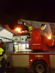 Innerhalb von wenigen Sekunden breitete sich das Feuer schlagartig aus und griff auf den Dachstuhl über. Den völlig überraschten Trupps sowie der Einsatzleitung blieb im wahrsten Sinne des Wortes nur mehr die rasche Flucht aus der Ofenhalle. Einige Leitern, Löschleitungen und Ausrüstungsgegenstände mussten dabei aufgegeben und in der Halle zurückgelassen werden.