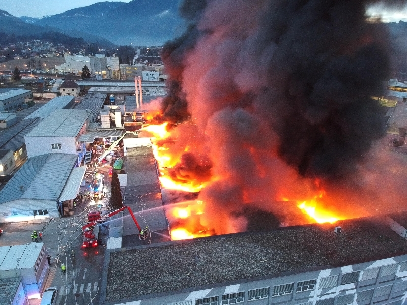 Industriehallenbrand in Villach
