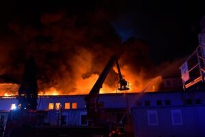 Zwischenzeitlich zeigte der massive Löscheinsatz Wirkung. Mit den Hubrettungsgeräten und mehreren Trupps auf den Flachdächern wurde das Feuer niedergekämpft und gegen 08.00 Uhr unter Kontrolle gebracht. Die Nachlöscharbeiten dauerten noch bis in die Abendstunden und den nächsten Vormittag an. Nicht zugängliche Teile der Ofenhalle wurden dabei mit Mittelschaum bedeckt.