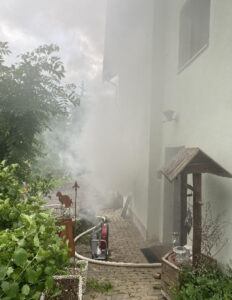 Rasch konnte der Brand gelöscht werden.  Gemeinsam mit einem weiteren Atemschutztrupp der FF Vassach wurde der verkohlte Wäschetrockner, sowie mehrere durch den Brand beschädigte Gegenstände aus dem Keller ins frei gebracht. Der giftige Brandrauch wurde mittels 2 elektrischen Hochleistungslüftern ins Freie geblasen.
