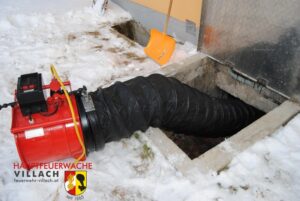 Gegen 14 Uhr wurde die Hauptfeuerwache von der Polizei zu einer Schadstoffmessung auf den Villacher Hausberg alarmiert. Bei einem Sanitäter schlug während der Patientenversorgung, in einem Gasthof, das am Rucksack befestigte Messgerät an. Die schwer verletze Person wurde mit dem Rettungshubschrauber ins LKH verbracht. Als unser Kommandofahrzeug eintraf schlugen bereits am Eingang des Hauses die Messgeräte stark an. Unter schweren Atemschutz wurde sofort das Gebäude auf weiter Personen untersucht und zusätzliche Messungen vorgenommen. In mehreren Räumen war die Kohlenmonoxid Konzentration auf lebensgefährliche Werte angestiegen. Die Gaszufuhr zum Gebäude wurde abgedreht und mittels mehreren Belüftungsgeräten der Schadstoff aus der Gaststätte geblasen.