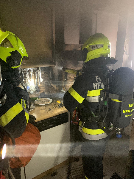 Innerhalb weniger Minuten konnten dann zwei Atemschutztrupps der Hauptfeuerwache Villach und der Freiwilligen Feuerwehr Fellach den Brand in der Küche löschen.