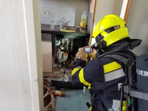 Die Hauptfeuerwache Villach wurde gemeinsam mit der FF Pogöriach und der örtlich zuständigen Feuerwehr Fellach gegen 08:30 Uhr morgens zu einem Küchenbrand in ein mehrgeschossiges Wohnhaus in den Stadteil Fellach alarmiert. Eine Nachbarin hörte die Rauchmelder und nahm bereits Rauchgeruch aus einer Wohnung im 2. Stock war. Sie alarmierte unverzüglich die Einsatzkräfte. Nachdem die Mieterin bereits geflüchtet war, ging die Nachbarin beherzt mit einem Feuerlöscher aus dem Stiegenhaus in die Wohnung und konnte den Brand, welcher im Bereich eines Untertischboilers ausgebrochen war, rasch ablöschen und so ein Ausbreiten auf die gesamte Küche verhindern. 2 Personen mussten mit Verdacht auf eine leichte Rauchgasvergiftung ins LKH Villach eingeliefert werden. Durch den Rauchmelder und das beherzte Eingreifen der jungen Frau konnte die Gefahr rechtzeitig erkannt werden und somit größerer Schaden verhindert werden.