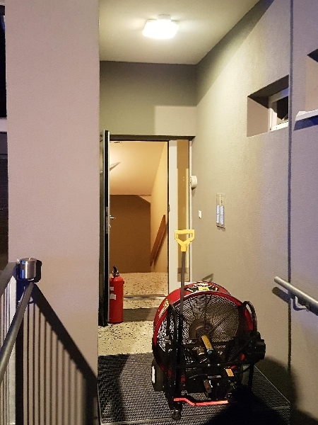 Das Stiegenhaus und der betroffene Bereich wurde mittels mehrerer Druckbelüfter rauchfrei gemacht.