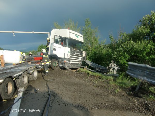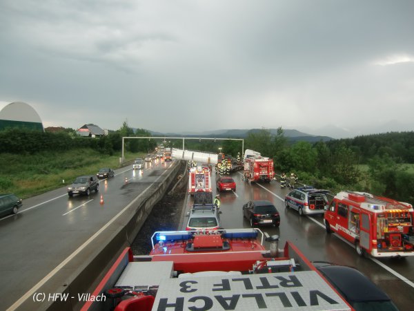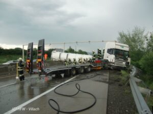 Kurz vor 18 Uhr wurde die Hauptfeuerwache gemeinsam mit der FF Wernberg zu einem schweren LKW Unfall auf die Südautobahn im Bereich Wernberg alarmiert.