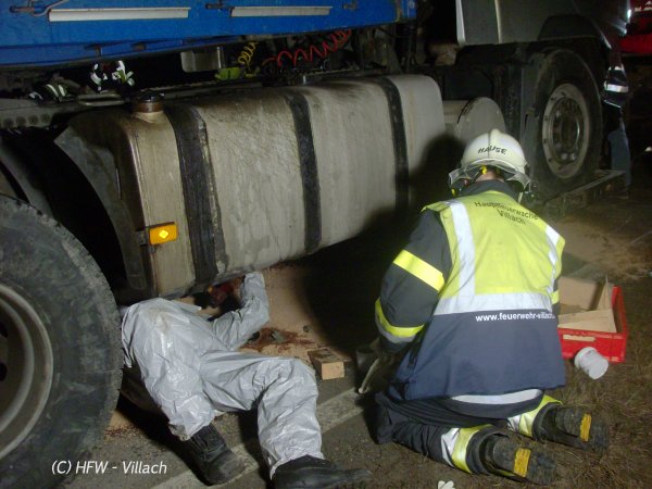 Sofort wurden seitens der Feuerwehr die Unfallstelle ausgeleuchtet, umfassende Ölbindemaßnahmen durchgeführt sowie der restliche Diesel aus dem Tank aufgefangen und dieser abgedichtet, um so weiteren Austritt zu vemeiden, berichtet Zugskommandant BM Scharf Alexander von der Hauptfeuerwache Villach.