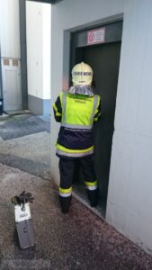Als die Einsatzstelle gerade verlassen wurde erreichte uns die Meldung vom Roten Kreuz das in der Bahnhofstraße eine Dame im Lift eingeschlossen sei und über Herzprobleme klagen solle.