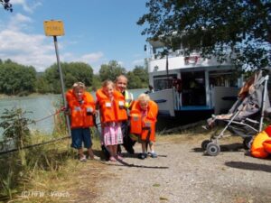 Mit dem großen Mehrzweckboot und dem Arbeistboot wurden im ersten Durchgang rund 20 Personen zu einer Anlegestelle gebracht.
