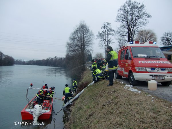 Ein Spaziergänger meldete über Notruf der Feuerwehr, einen Ölaustritt in die Drau, im Bereich des Radweges bei der Friedensbrücke.