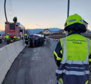 Kurz nach 17 Uhr wurde die Hauptfeuerwache Villach gemeinsam mit der FF Velden und der FF Wernberg zu einem gemeldeten, schweren Verkehrsunfall auf die A2 Südautobahn in Fahrtrichtung Klagenfurt, kurz nach der Auffahrt Wernberg alarmiert.Nach Eintreffen unseres technischen Zuges, gemeinsam mit der FF Wernberg wurde erkannt, dass ein Fahrzeug beschädigt und seitlich auf der Überholspur…