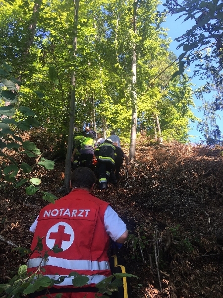 Bei unserem Eintreffen konnte festgestellt werden das die Person schon aus dem Wasser geborgen war. Am dortigen steilen Ufer wurde die Person durch das anwesenden Notarztteam des Roten Kreuzes bereits reanimiert. Ein Einsatz mittels Feuerwehrboot war nicht erforderlich. Unter der laufenden Reanimation wurde die Person mittels Schleifkorbtrage der Hauptfeuerwache mit vereinten Kräften über die steile Waldböschung rund 50 Meter bis zum dortigen Parkplatz gezogen.