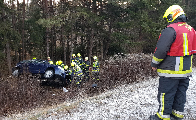 Eine Verletze Frau wurde noch im Fahrzeug bereits vom Notarzt des Roten Kreuz versorgt. Glücklicherweise war die Lenkerin nicht im Auto eingeklemmt und konnte mittels Schaufeltrage von den Rettungskräften aus dem Fahrzeug geholt werden. Sie wurde verletzt und ins LKH Villach verbracht.