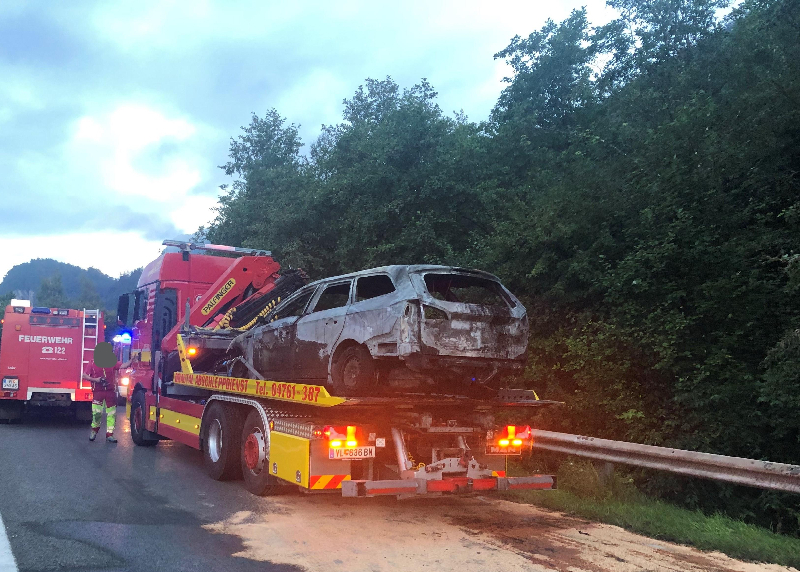 Durch die Feuerwehr wurde der Brand rasch gelöscht und ein Übergreifen auf die nahen gelegenen Bäume und Sträucher neben der Autobahn verhindert. Der PKW brannte vollständig aus.
