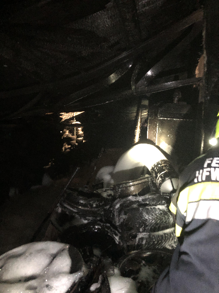 Diese Brandbekämpfungsmaßnahmen gestalteten sich äußerst schwierig, zumal das Lager randvoll mit Autoreifen, welche eine besondere Brandlastdarstellen, gefüllt war.