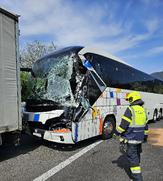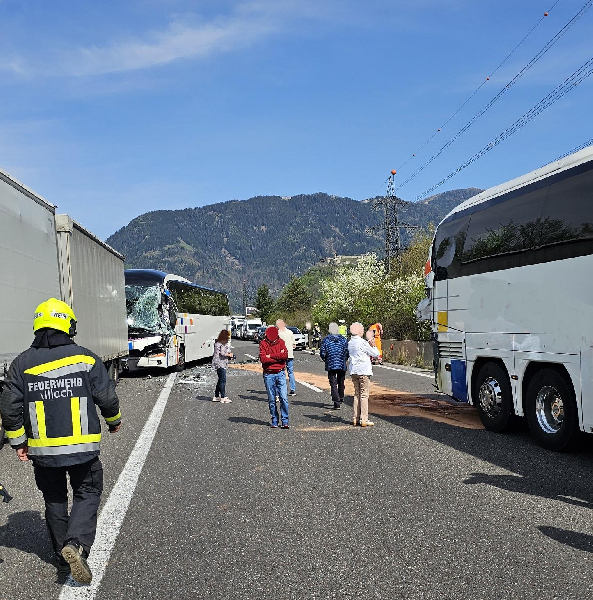 Laut ersten Meldungen waren zwei Reisebusse und ein LKW in den Unfall verwickelt. Genauere Angaben konnten keine gemacht werden.