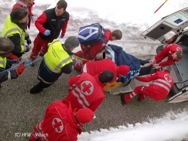 Nach rund 40 Minuten konnte schlussendlich der Patient in ins Freie gebracht, und in weiterer Folge ins LKH Villach eingeliefert werden.