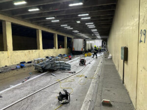 Auf der A10, Unterflurtrasse St. Andrä in Fahrtrichtung Salzburg, ereignete sich ein schwerer Verkehrsunfall. Ein LKW touchierte den Aufpralldämpfer des südlichen Portals und kam nach einer Strecke von rund 80 Metern in der Unterführung zum Stillstand.