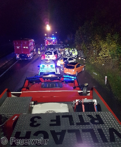 Kurz nach 20 Uhr wurde die Hauptfeuerwache Villach gemeinsam mit der Freiwilligen Feuerwehr Wernberg und Velden zu einem schweren Unfall mit vermutlich eingeklemmten Personen auf die A2 Südautobahn in Fahrtrichtung Klagenfurt alarmiert. Am Einsatzort konnte festgestellt werden das glücklicherweise keine Personen in den Fahrzeugen eingeklemmt waren.Ein Kleintransporter sowie 3 PKW waren bei diesem Unfall beteilig. Der Lieferwagen lag auf der Seite, ein Kleinwagen wurde durch die Wucht auf den Grünstreifen geschleudert und kam am Dach zu liegen. Zwei weitere PKW wurden ebenfalls erheblich beschädigt. Durch das Rote Kreuz mit Notarzt wurden 3 Patienten versorgt und mit Verletzungen unbestimmten Grades ins LKH Villach verbracht.Unsere Aufgabe bestand in der Ausleuchtung sowie Absicherung der Unfallstelle, des weiteren mussten ausgeflossener Treibstoff und Motoröl gebunden werden. Die Feuerwehr Velden stellte mittels Kranfahrzeug den Transporter wieder auf die Räder. Auf Ersuchen der Autobahnpolizei Villach wurden die ersten 2 Fahrstreifen gereinigt und die Unfallwracks am Pannenstreifen gesichert abgestellt, wo sie dann von privaten Abschleppfirmen abgeholt werden. Im Einsatz standen die oben erwähnten Feuerwehren unter der Einsatzleitung der FF Wernberg sowie das Rote Kreuz mit Notarzt und die Autobahnpolizei Villach mit mehreren Streifen.