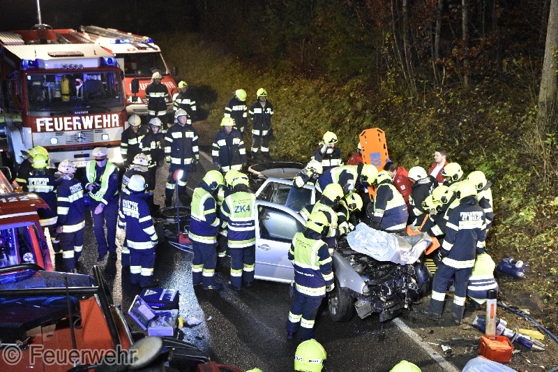 Gegen 03:20 Uhr Uhr wurde die Hauptfeuerwache Villach gemeinsam mit der Freiwilligen Feuerwehr St. Niklas und Drobollach zu einem Verkehrsunfall mit eingeklemmten Person auf die Grossattelstrasse im Ortsteil St. Niklas alarmiert. Aus noch unbekannter Ursache stießen dort 2 Pkw frontal zusammen und kamen am Straßenrand zum Stehen. Bei Eintreffen der ersten Einsatzkräfte konnte festgestellt werden, dass eine Person schwerst im Fahrzeug eingeklemmt war. Die Zwei weitere Personen des anderen Fahrzeuges konnten sich selbständig aus dem Unfallfahrzeug befreien. Diese wurden ebenfalls vom Roten Kreuz erst versorgt. Der junge Lenker war im Beinbereich so schwer eingeklemmt, dass seitens der Feuerwehr insgesamt 3 hydraulische Rettungsgeräte parallel eingesetzt werden mussten, um den Mann aus seiner misslichen Lage zu befreien. Nach rund 35 Minuten konnte der verletzte mittels Bergebrett endlich geborgen und dem Rettungsdienst übergeben werden. Die Unfallstelle wurde parallel zur Bergung großräumig ausgeleuchtet und die ausgeflossenen Betriebsmittel gebunden sowie der Brandschutz sichergestellt. Die abschließende Abschleppung der Verunfallten Fahrzeuge wurden durch ein privates Abschleppunternehmen durchgeführt.