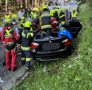 Der Fahrer eines Pkws war hinter dem Lenkrad im Bein-Bereich schwerst eingeklemmt, dieser wurde nach Rücksprache mit dem Notarzt des Rettungshubschraubers RK 1, mittels mehreren hydraulischen Rettungsgeräten sowie hydraulischen Zylindern der Hauptfeuerwache und der FF Bad Bleiberg befreit. Dazu wurde einerseits ein Zugang für die Versorgung über die Beifahrerseite geschaffen und parallel dazu das Dach entfernt.