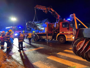 Beim Eintreffen des technischen Zuges der Hauptfeuerwache konnte die verletzte Person, welche sich noch im Fahrzeug  befand gemeinsam mit dem anwesenden Rettungsdienst aus dem PKW befreit und durch das Notarztteam versorgt werden.