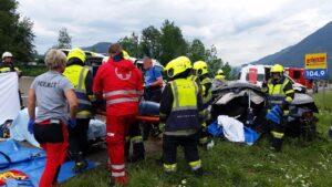 Die Junge Familie wurde mit Verletzungen unbestimmten Grades ins LKH Villach transportiert.