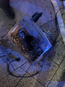 Durch die Feuerwehrkräfte wurde die Sprinkleranlage abgedreht, die verbrannte Einrichtung ins Freie gebracht und der Brandbereich mittels Wärmebildkamera auf Glutnester untersucht.