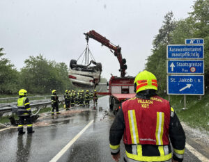 Eine Person wurde vom Rettungsdienst erstversorgt und mit Verletzungen unbestimmten Grades ins LKH Villach eingeliefert.